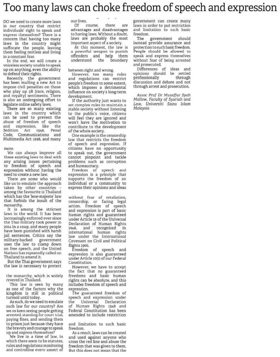Too many laws can choke freedom of speech and expression