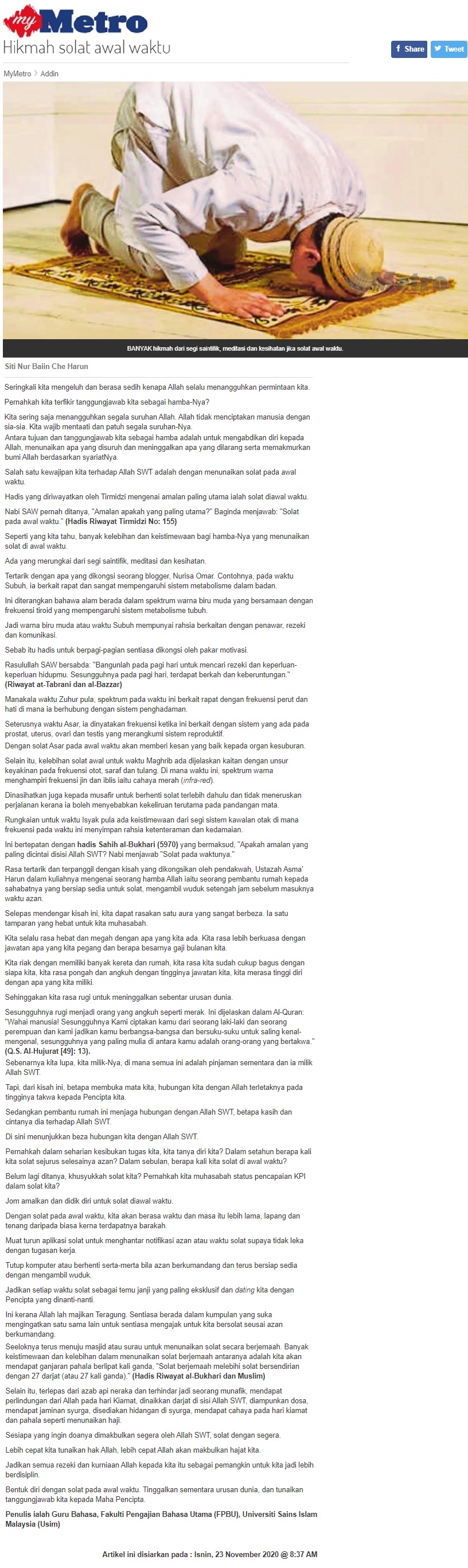 Hikmah Solat Awal Waktu