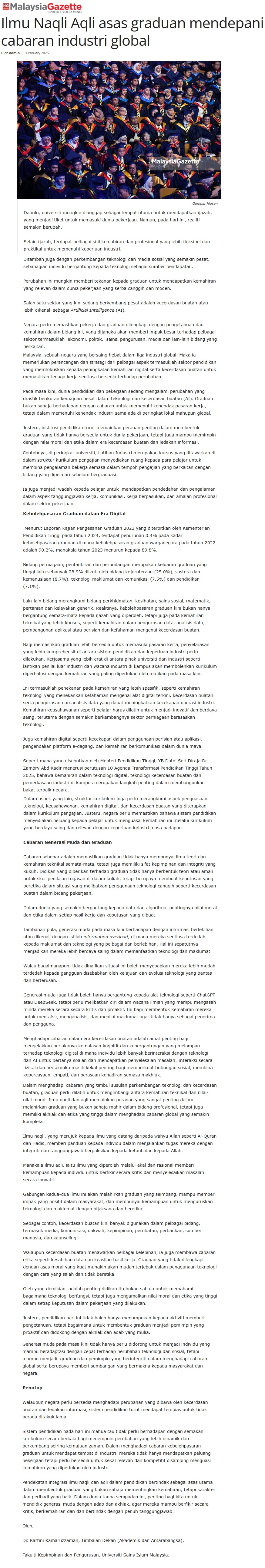 Ilmu naqli dan aqli asas graduan mendepani cabaran industri global
