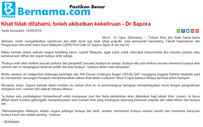 Khat Tidak Difahami Boleh Akibatkan Kekeliruan
