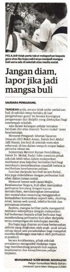 Jangan Diam Lapor Jika Jadi Mangsa Buli