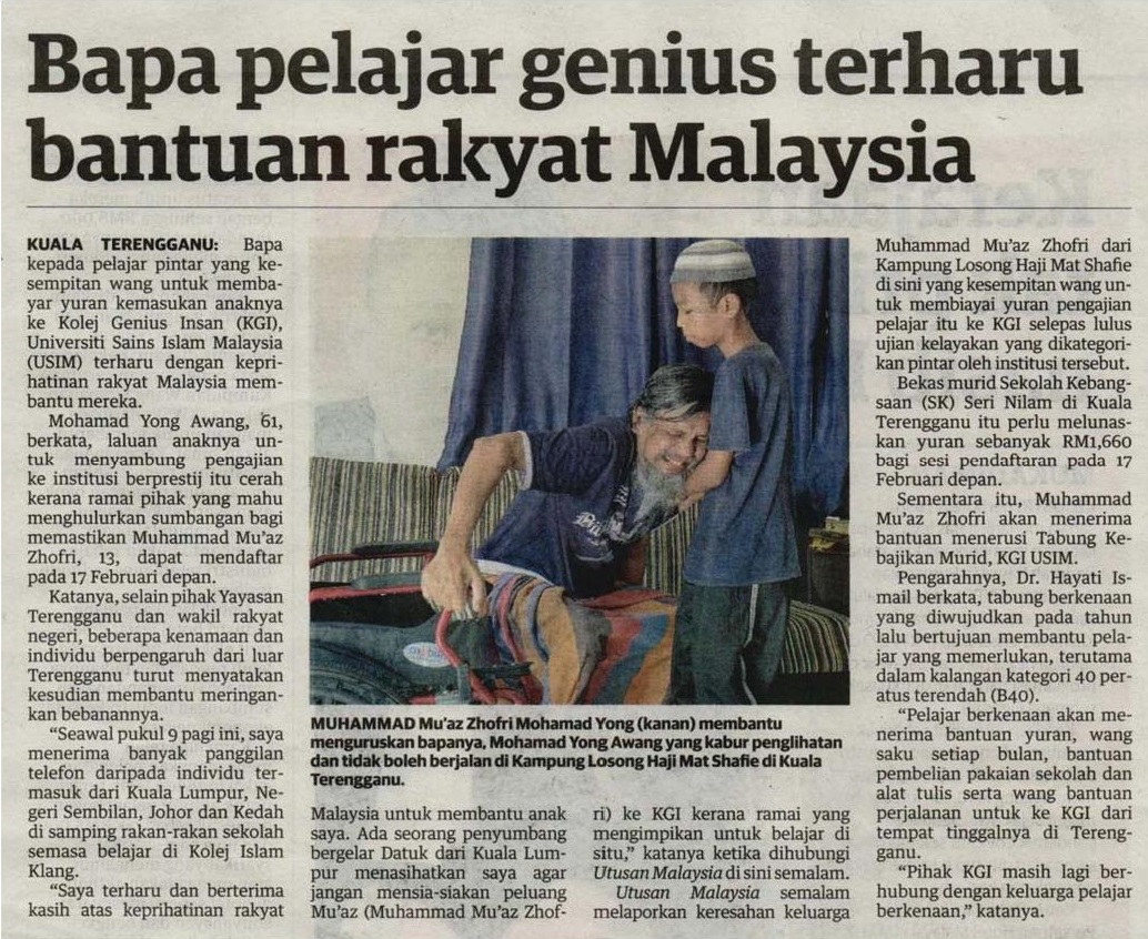 Bapa Pelajar Genius Terharu Bantuan Rakyat Malaysia