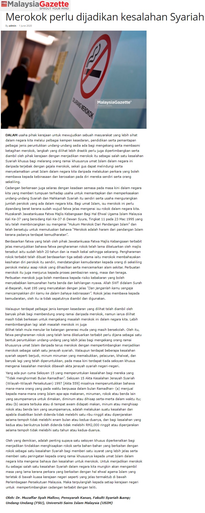 Merokok Perlu Dijadikan Kesalahan Syariah