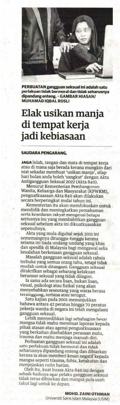 Elak usikan manja di tempat kerja jadi kebiasaan