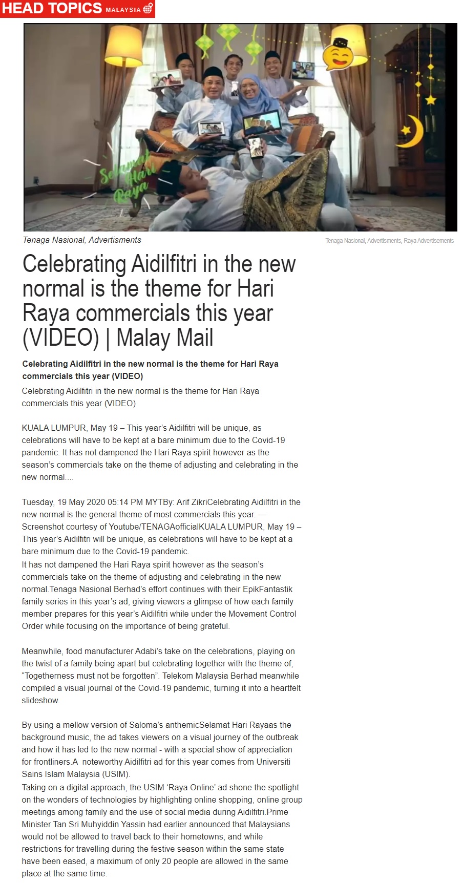 Celebrating Aidilfitri In The New Normal Is The Theme For Hari Raya Commercials This Year