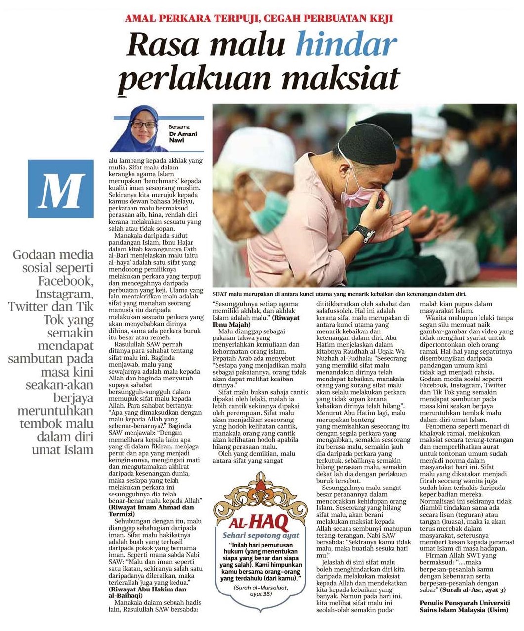 Rasa malu hindar perlakuan maksiat
