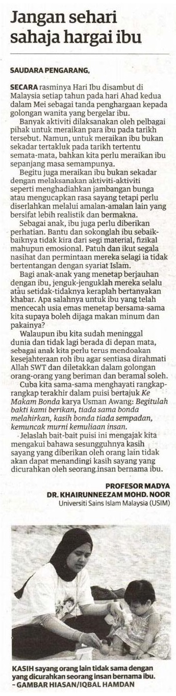 Jangan Sehari Sahaja Hargai Ibu
