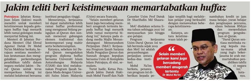 Jakim teliti beri keistimewaan memartabatkan huffaz