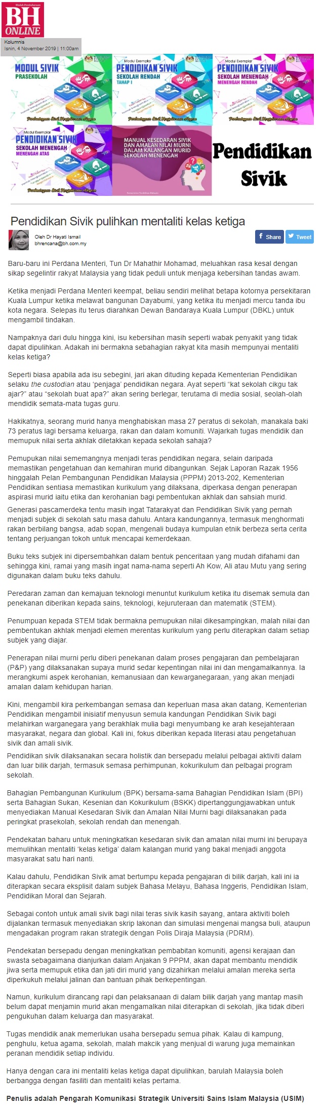 Pendidikan Sivik Pulihkan Mentaliti Kelas Ketiga