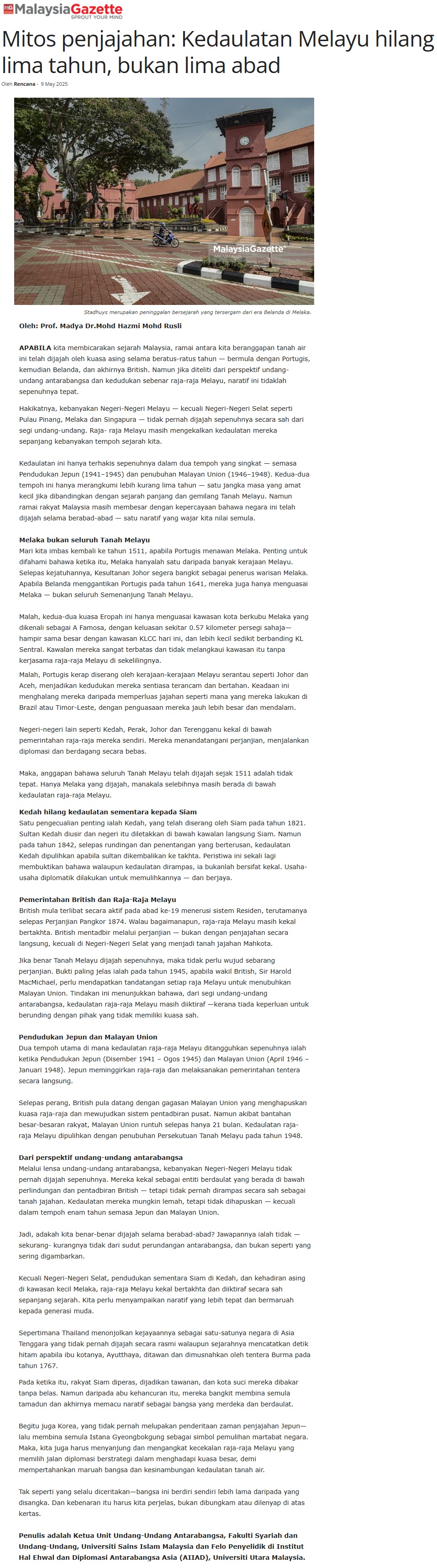 Mitos penjajahan: Kedaulatan Melayu hilang lima tahun, bukan lima abad