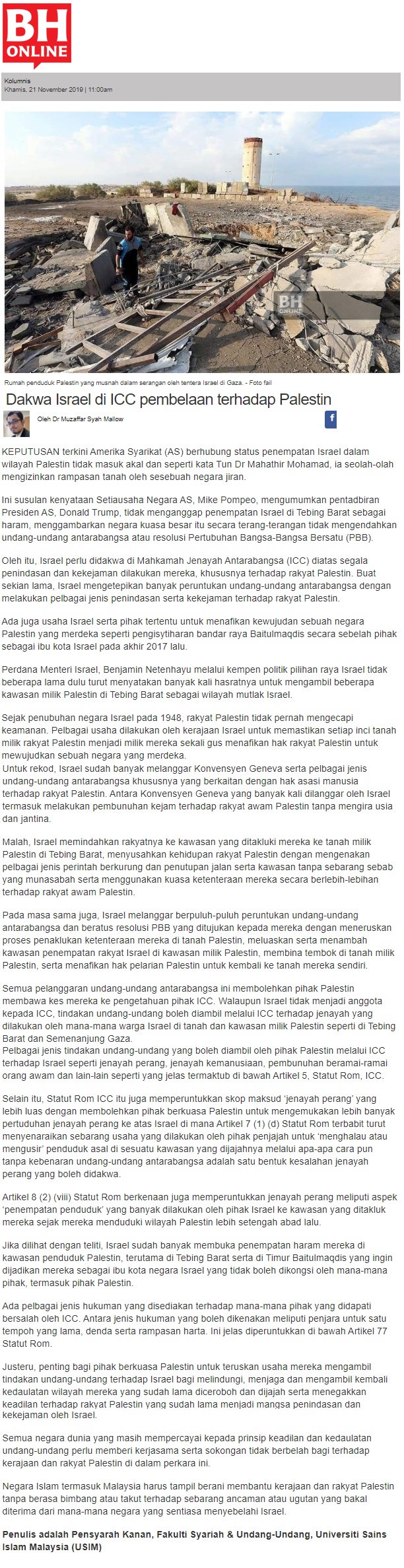 Dakwa Israel Di ICC Pembelaan Palestin