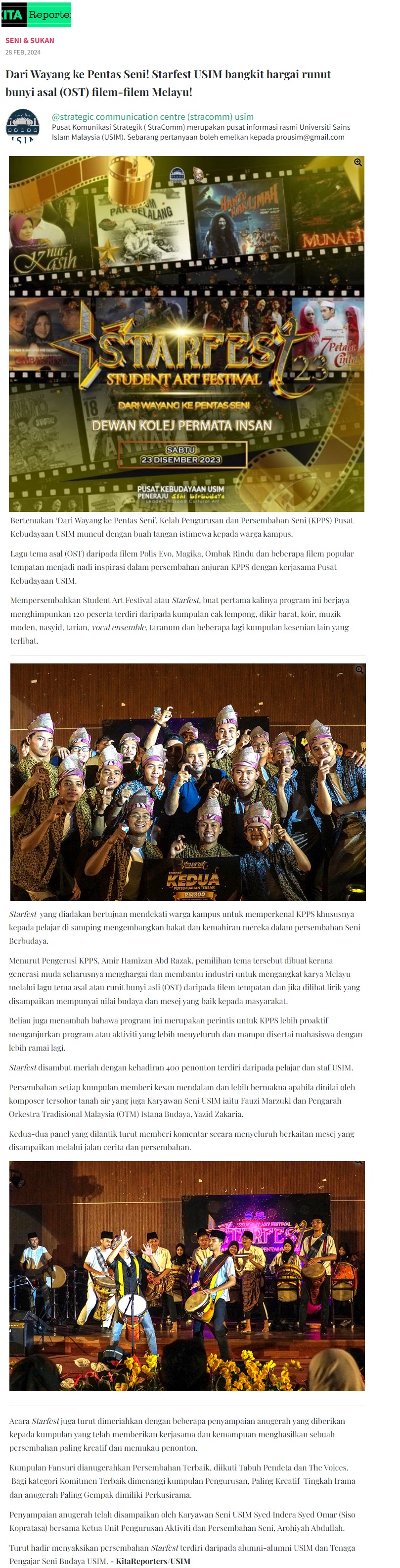 Dari pawagam ke pentas seni! Starfest USIM bangkit hargai runut bunyi asal (OST) filem-filem melayu