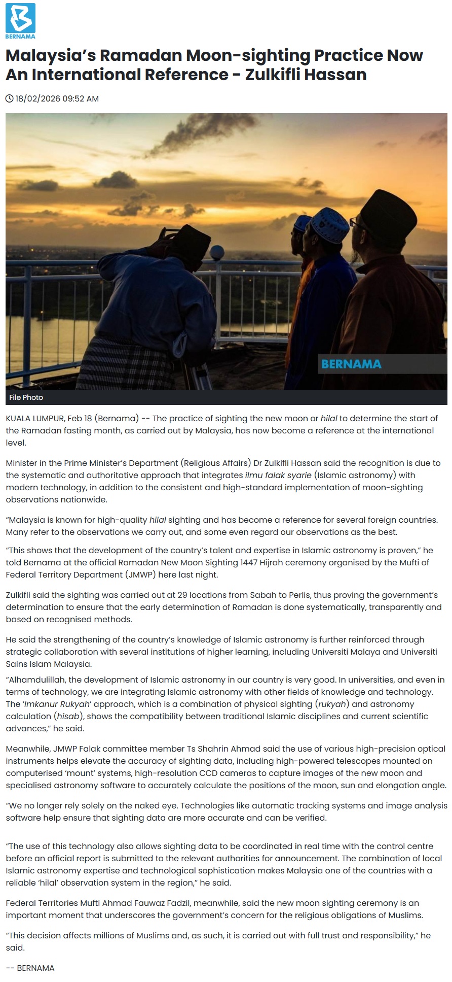 MALAYSIA'S RAMADAN MOON- SIGHTING PRACTISE NOW AN INTERNATIONAL REFERENCE