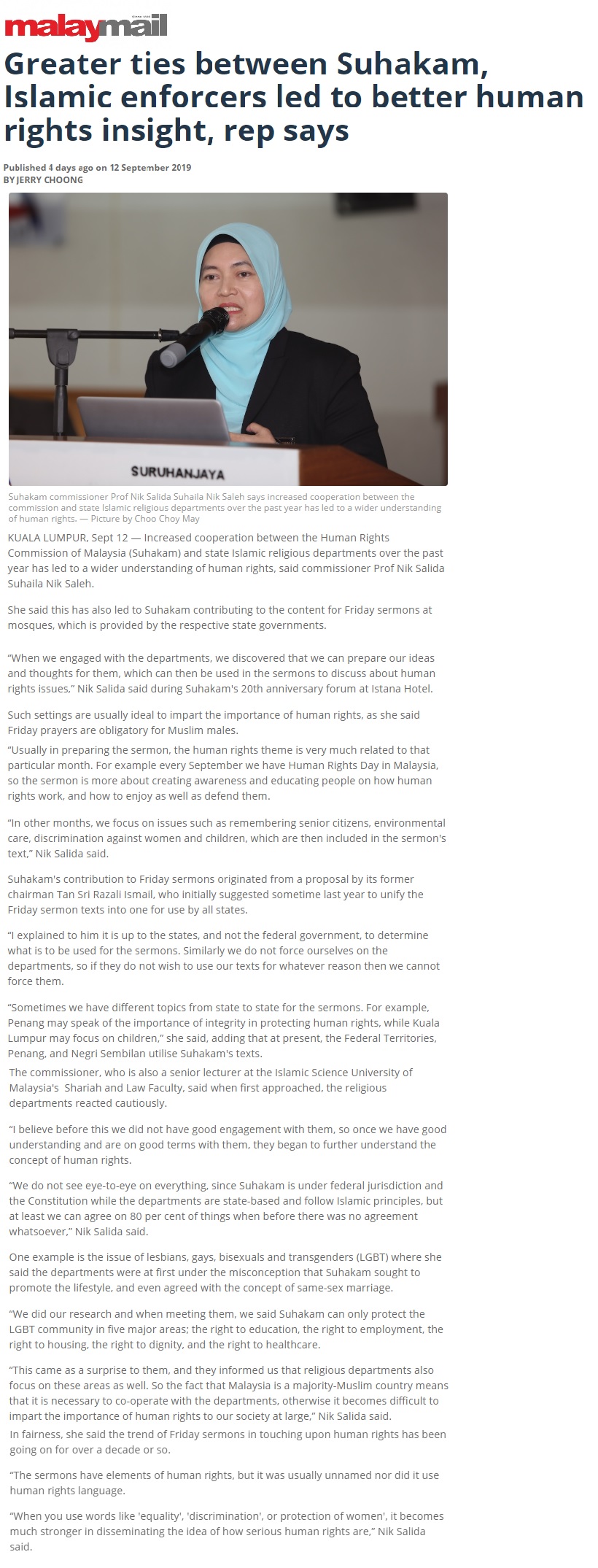 Greater Ties Between Suhakam, Islamic Enforcers Led To Better Human Rights Insight