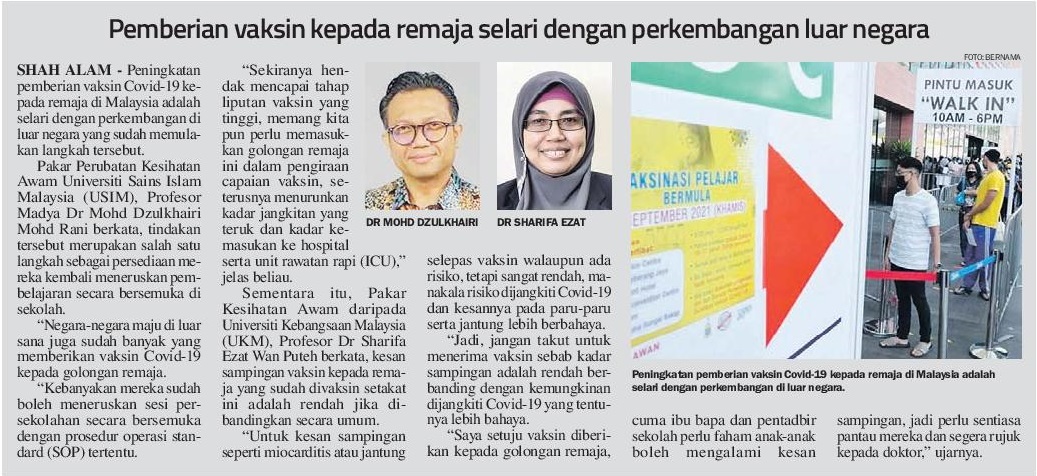 Pemberian Vaksin Kepada Remaja Selari Dengan Perkembangan Luar Negara