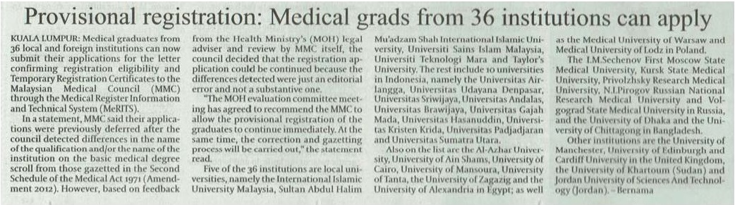 Provisional Registration ; Grads From 36 Institutions Can Apply