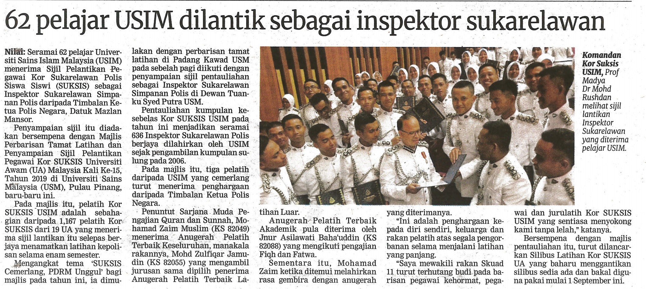 62 Pelajar USIM Dilantik Inspektor Sukarelawan