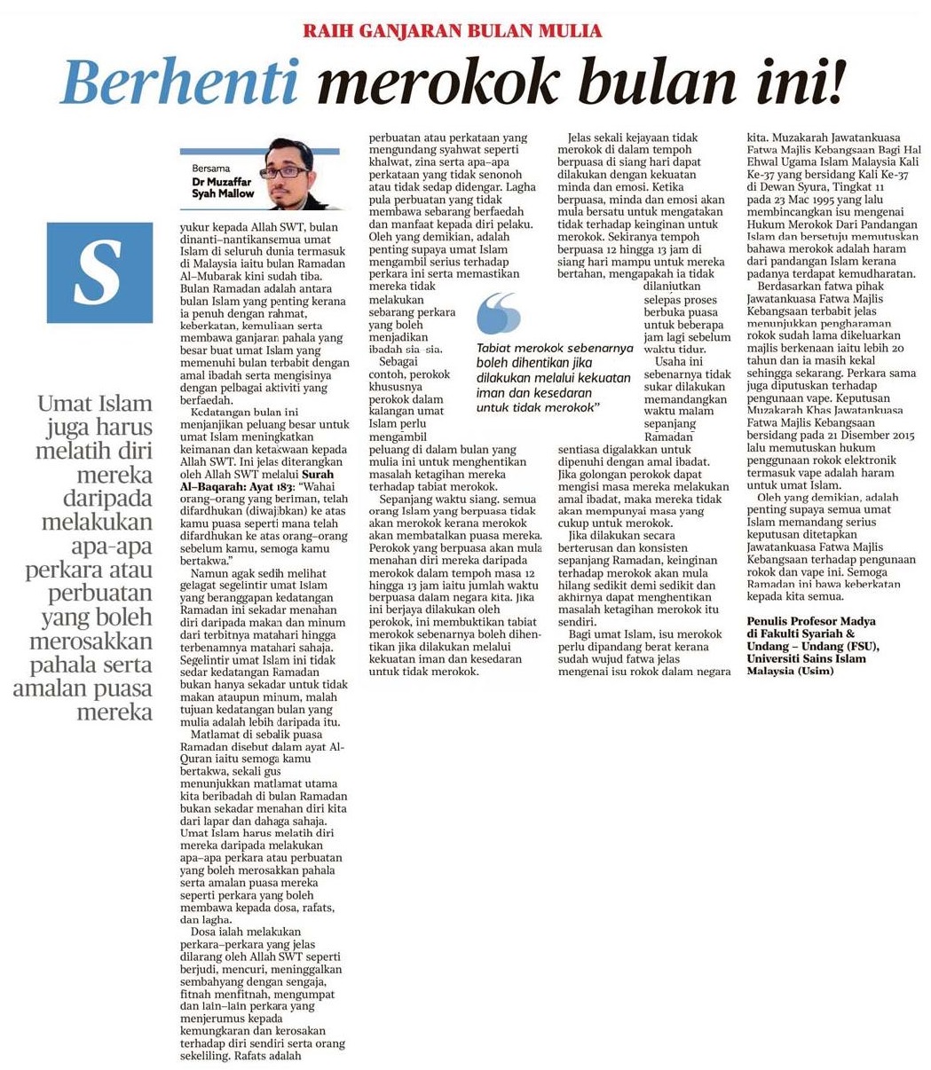 Raih ganjaran bulan mulia, berhenti merokok bulan ini