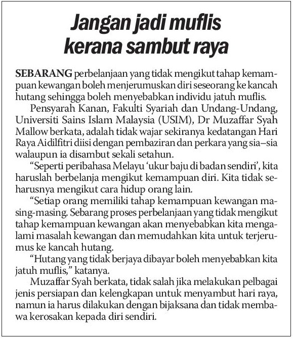 Jangan Jadi Muflis Kerana Sambut Raya