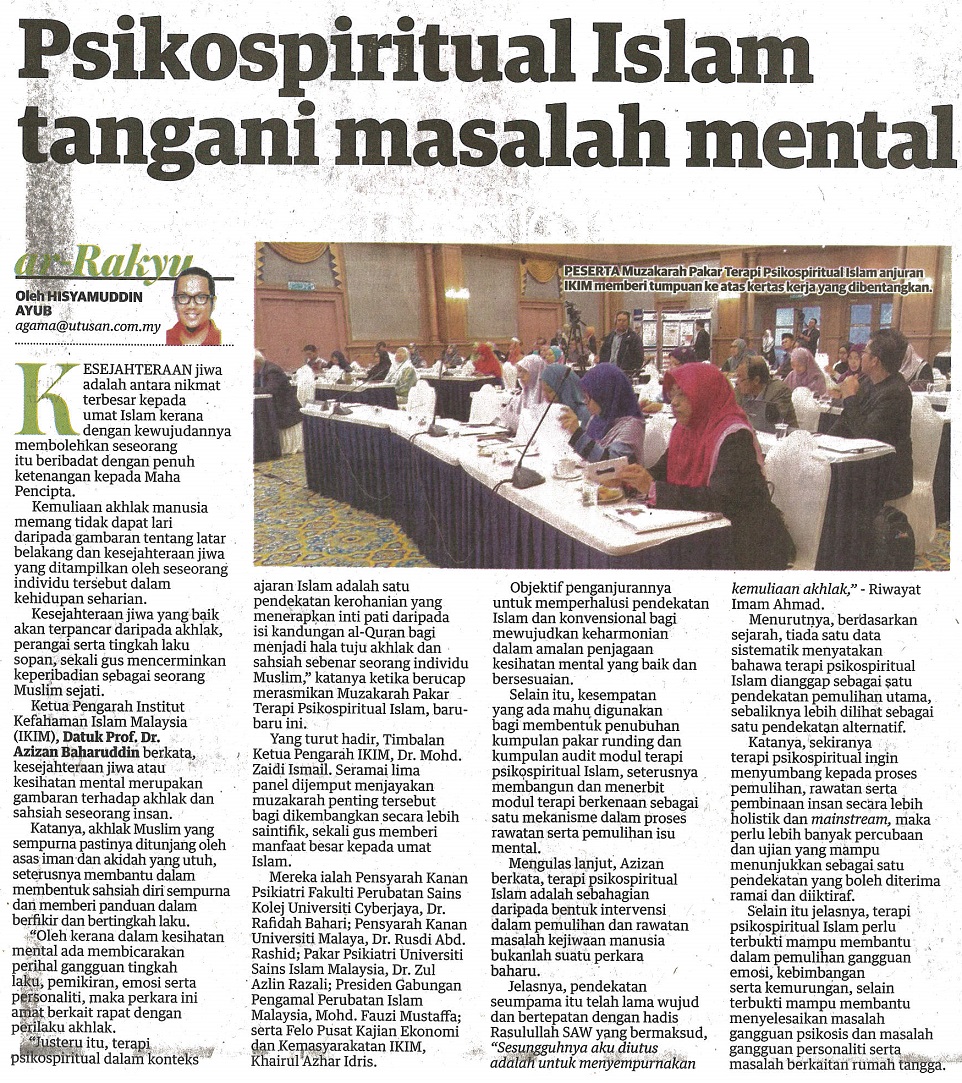 UTUSAN MALAYSIA - PSIKOSPIRITUAL ISLAM TANGANI MASALAH MENTAL, 15 JUN 2017, MS 21.jpg