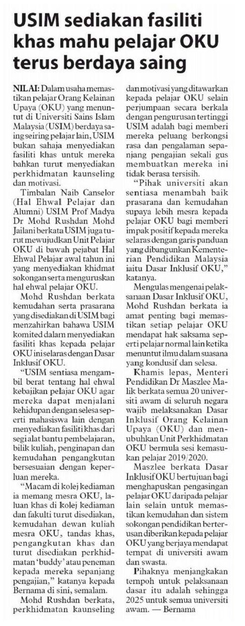 USIM Sediakan Fasiliti Khas Mahu Pelajar OKU Terus Berdaya Saing