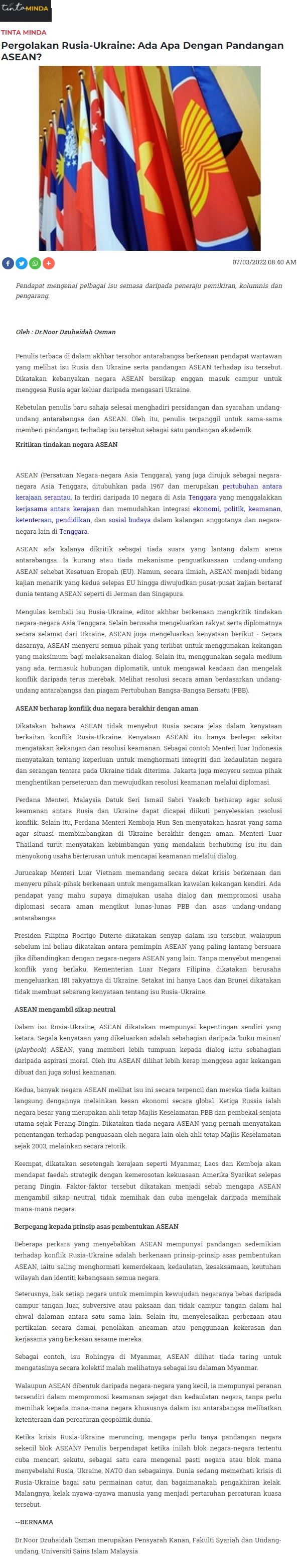 Pergolakan Rusia - Ukraine ; Ada Apa Dengan Pandangan ASEAN