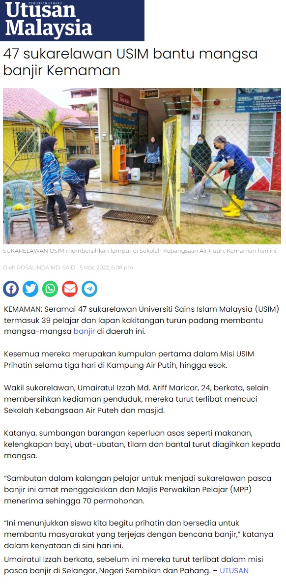 47 Sukarelawan USIM Bantu Mangsa Banjir Kemaman