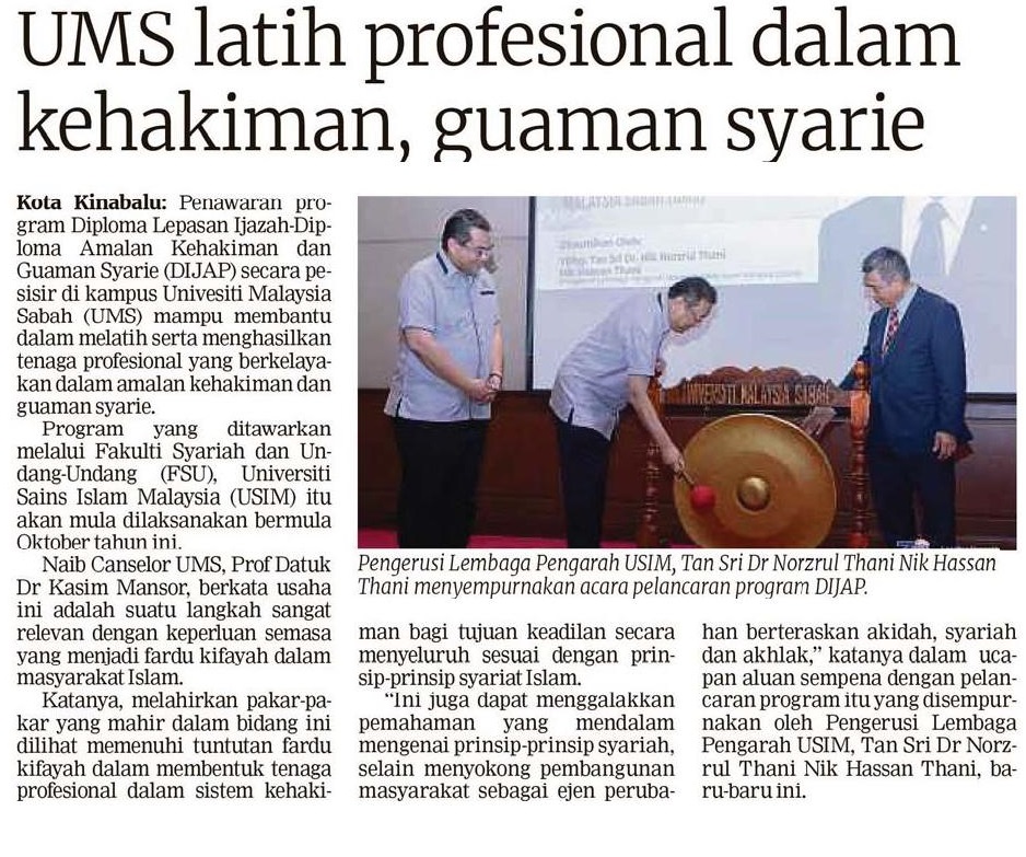 UMS latih profesional dalam kehakiman, guaman syarie