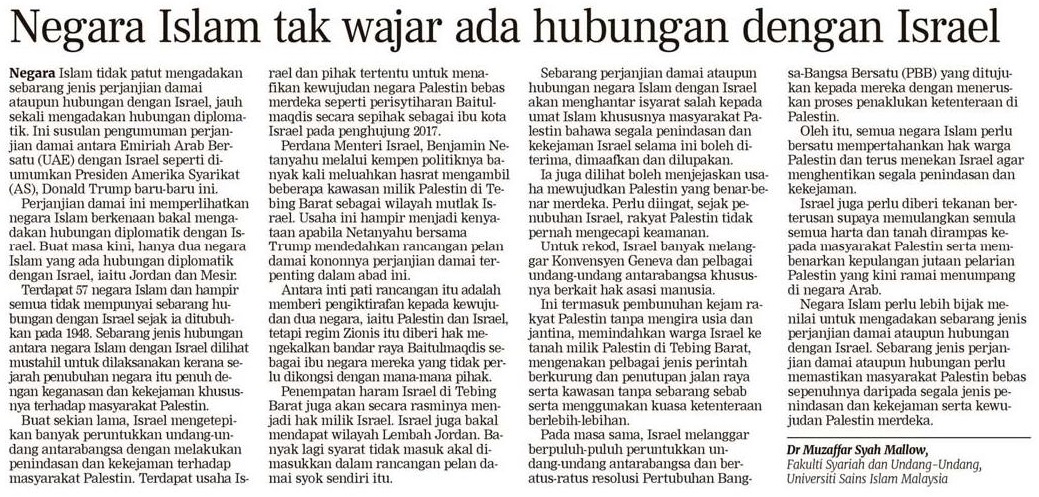 Negara Islam Tak Wajar Ada Hubungan Dengan Israel