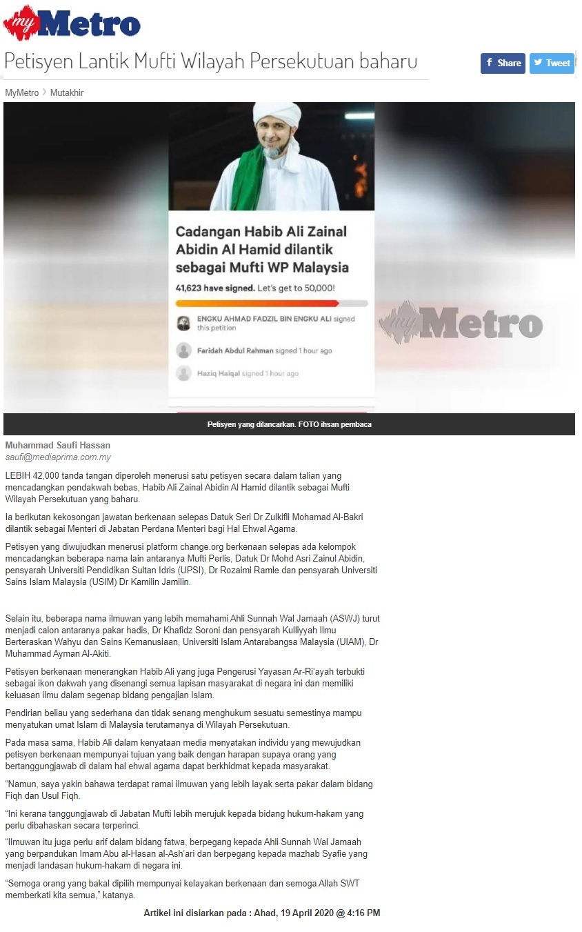 Petisyen Lantik Mufti Wilayah Persekutuan