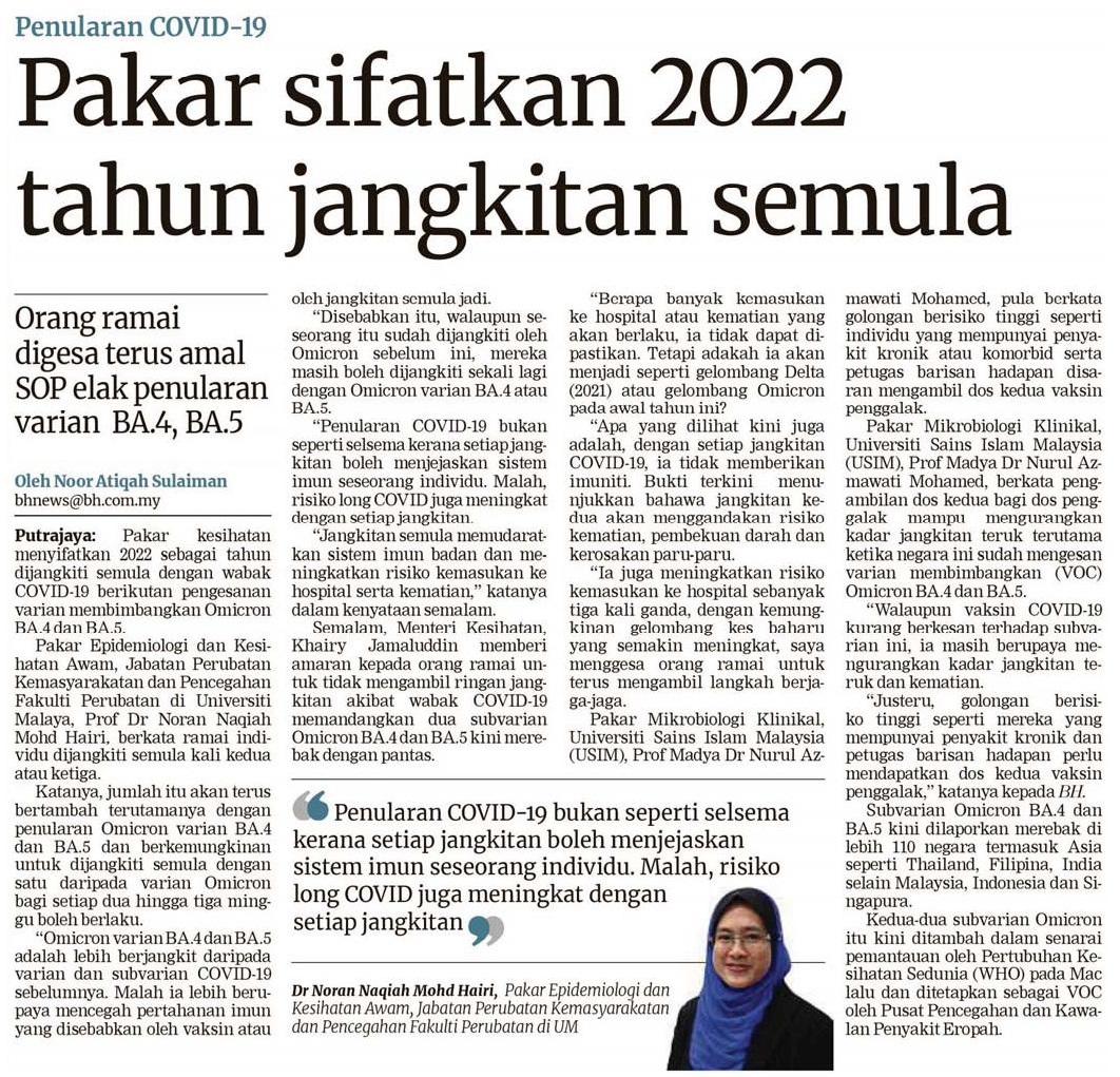 Pakar Sifatkan 2022 Tahun Jangkitan Semula