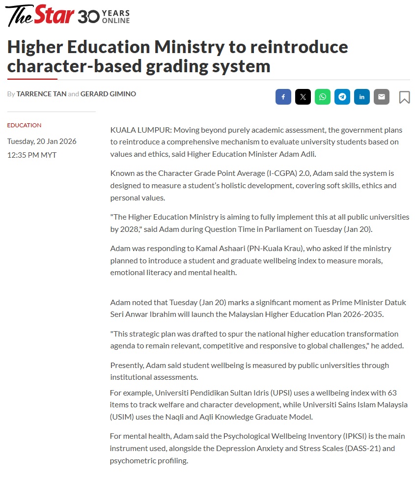 HIGHER EDUCATION MINISTRY TO REINTRODUCE CHARACTER-BASED GRADING SYSTEM