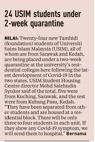 24 USIM Students Under 2-Week Quarantine