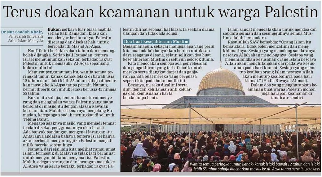 Terus doakan keamanan untuk warga Palestin