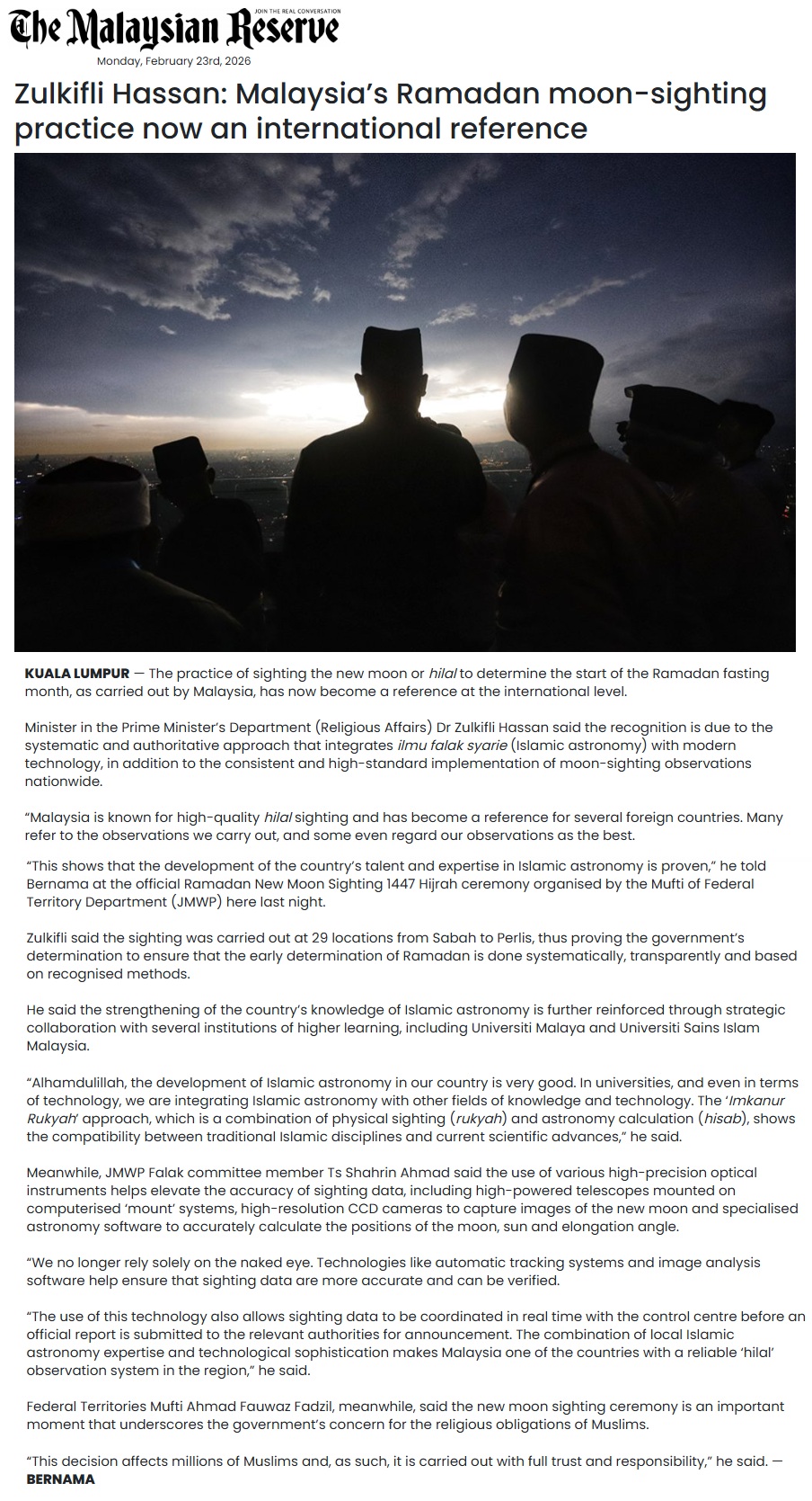 MALAYSIA'S RAMADAN MOON SIGHTING METHOD GAINS GLOBAL RECOGNITION