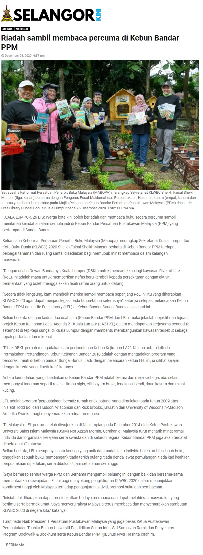 Riadah Sambil Membaca Percuma Di Kebun Bandar PPM
