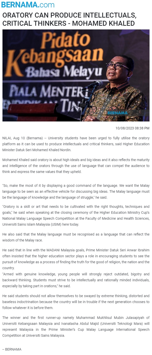 BERNAMA 10 OGOS 2023 ORATPRY CAN PRODUCE INTELECTUALS, CRITICAL THINKERS.jpg