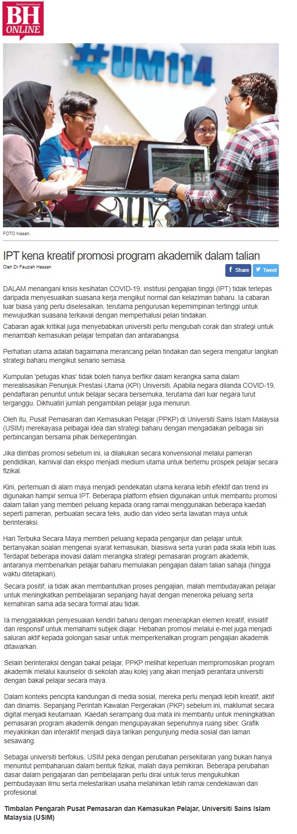 IPT Kena Kreatif Promosi Program Akademik Dalam Talian