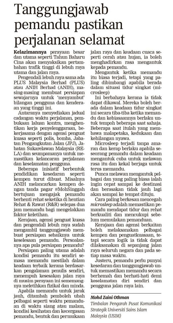 Tanggungjawab Pemandu Pastikan Perjalanan Selamat