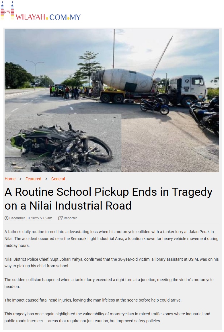 A ROUTINE SCHOOL PICKUP ENDS IN TRAGEDY ON A NILAI INDUSTRIAL ROAD
