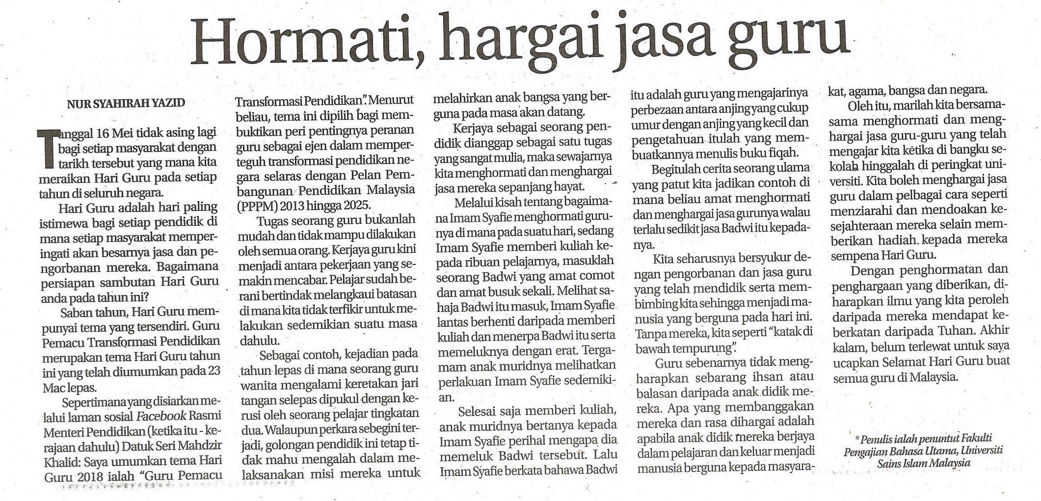 Hormati Hargai Jasa Guru