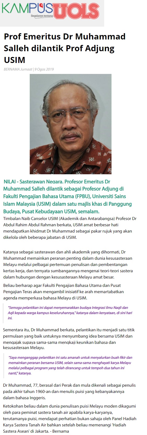 Prof Emeritus Dr Muhammad Salleh Dilantik Prof Adjung USIM