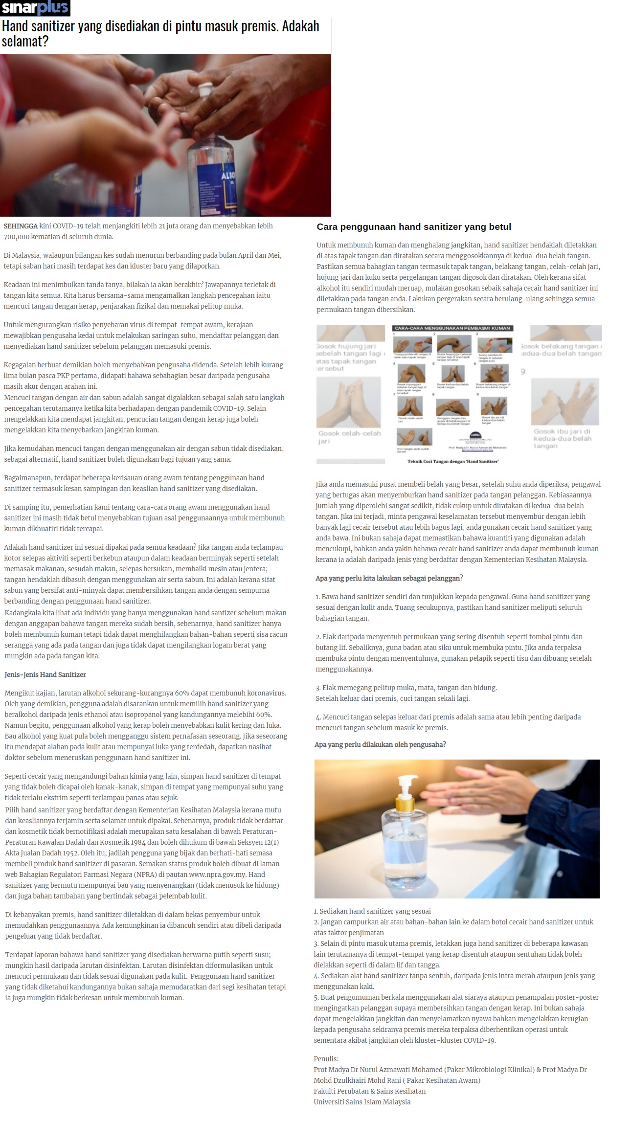 Hand Sanitizer Yang Disediakan Di Pintu Masuk Premis. Adakah Selamat?