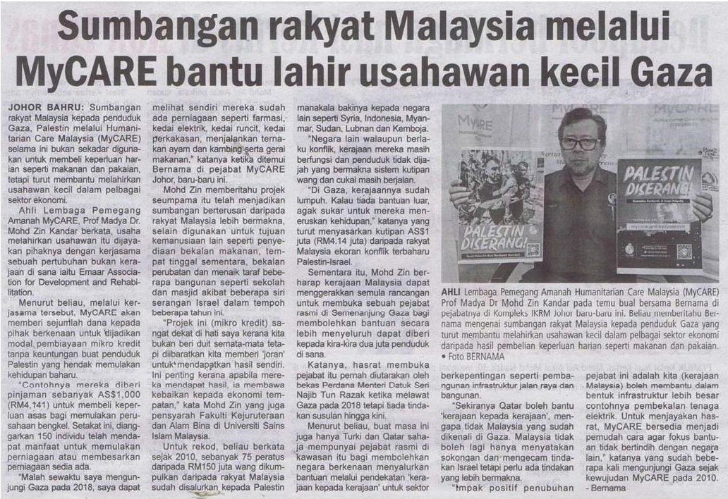 Sumbangan Rakyat Malaysia Melalui MyCare Bantu Lahir Usahawan Kecil Gaza