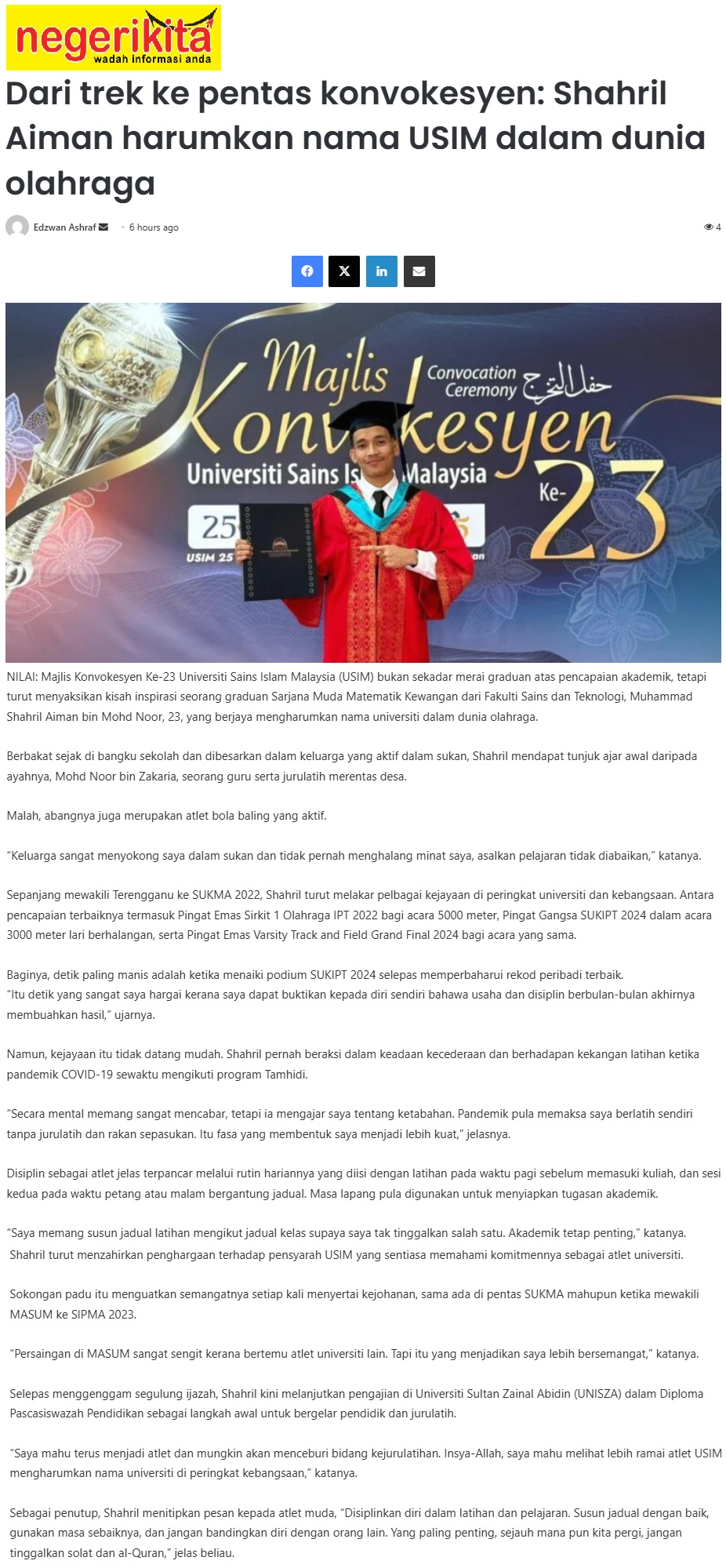 SHAHRIL AIMAN HARUMKAN NAMA USIM DALAM DUNIA OLAHRAGA