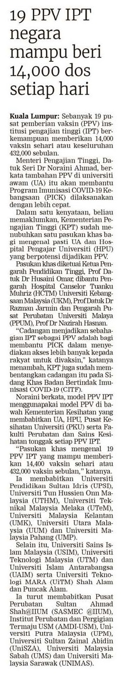 PPV IPT Mampu Beri 14,000 Vaksin Sehari
