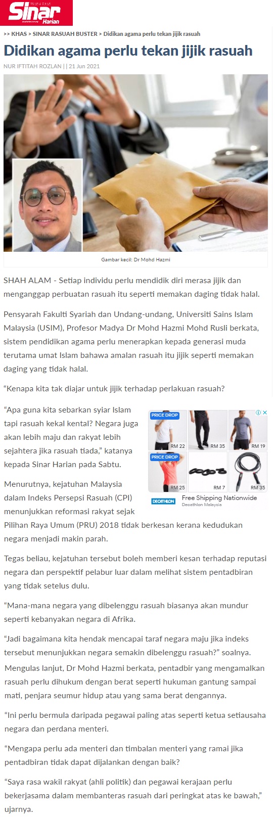 Didikan Agama Perlu Tekan Jijik Rasuah