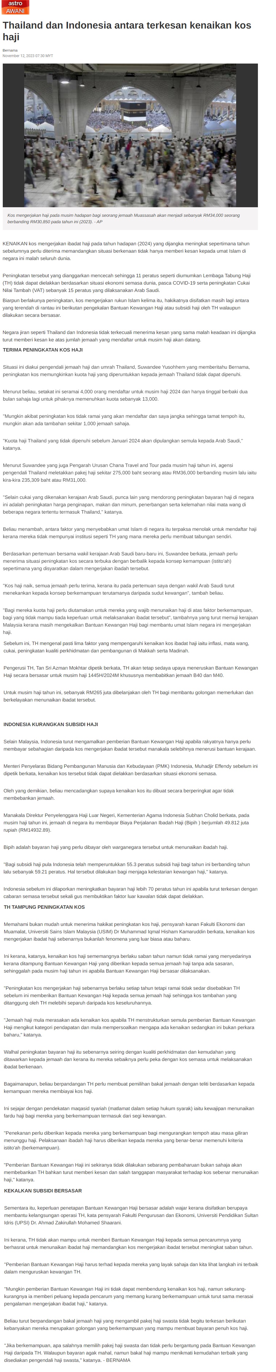 Thailand dan Indonesia antara terkesan kenaikan kos haji
