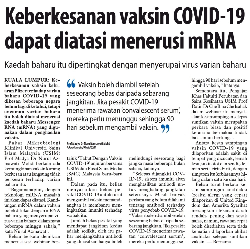 Keberkesanan Vaksin Covid-19 Dapat Diatasi Menerusi MRNA