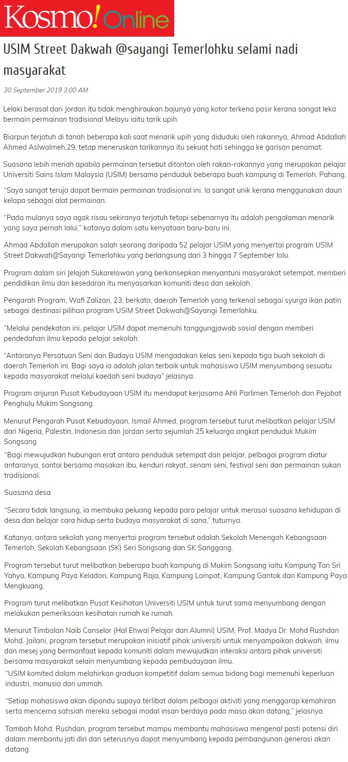 USIM Street Dakwah @Sayangitemerloh Selami Nadi Masyarakat